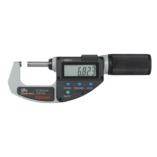 • Excellent resistance against water and dust (IP65) enables this micrometer to be used in machining situations that include splashing coolant fluid.